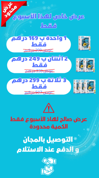 الأمر بسيط جدًا بعد أن تطلب المنتج من خلال ملا الاستمارة سيتصل بك أحد موظفي الشركة ليؤكد معك الطلب، وسنرسل لك المنتج في غضون 24 الى 48 ساعة ( الدفع يكون عند الاستلام ) لدينا فريق توصيل محترف يوصل لك المنتج أينما كنت خلال مدة 24 الى 48 ساعة خدمة التوصيل مجانية بجميع مدن المغرب