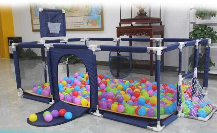 peut être utilisé comme terrain de balle pour bébé et il y a un mini panier de basket-ball et 2 buts de football pour que votre bébé puisse tirer ou frapper le ballon